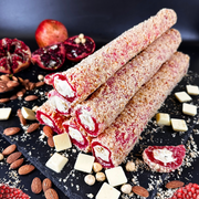Продукты: цукурсы, сиропы гликоза, кукуруза сиете, гранатаболу сула, балта шоколаде, манделес, лазду риексти, дабига партикас красвиела, эмульгаторы.