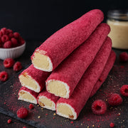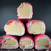 Lukums ar aveņu garšu, balto šokolādi un mandelēm