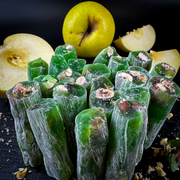 Saldie ābolu batoniņi pildīti ar aprikožu kauliņiem. Garša mēreni saldena, ar nelielu zaļā ābola skābenumu! Ļoti garšīgs un viegls deserts!!