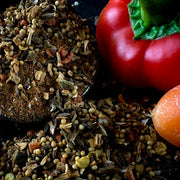 Sastāvs: sinepju sēklas, ķimenes, saldās paprikas pulveris, zaļā paprika, pipari melni, sīpolu granulas, čili malti, burkānu granulas, čili granulas