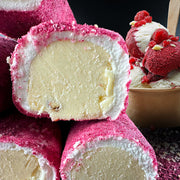 Lukums ar aveņu garšu, balto šokolādi un mandelēm